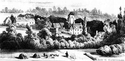 Une vue de Villemoisson en 1841, lorsque les chemins bucoliques existaient encore et que la maison n’était qu’une cabane (au milieu derrière l’Orge bordée d’arbres)…. Il n’y avait pas de fils électriques, de fils téléphoniques, de cable TV, de route de Corbeil, et en 1871 « les émigrants sont attirés par l’air pur et embaumé qu’on y respire, le calme parfait qui y règne, et la proximité de la forêt de Sequigny... ».