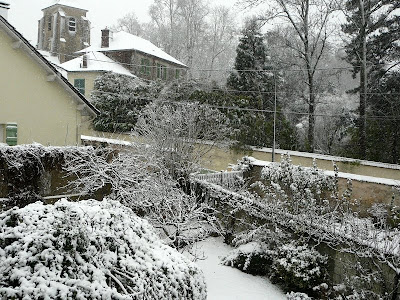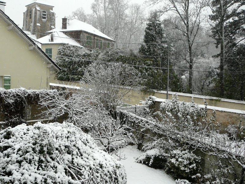 Avant que le jardin n’aie revêtu son étole de neige pour Noël, le geai fait ses provisions… Il revient toutes les 3 minutes pour picorer les châtaignes que nous lui avons préparées (!)….