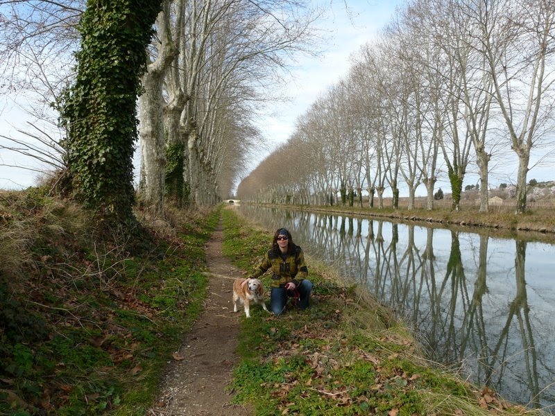 Une promenade au milieu des amandiers en fleur….le long du canal du Midi qui risque de perdre son label (Unesco) avec sa maladie des platanes.