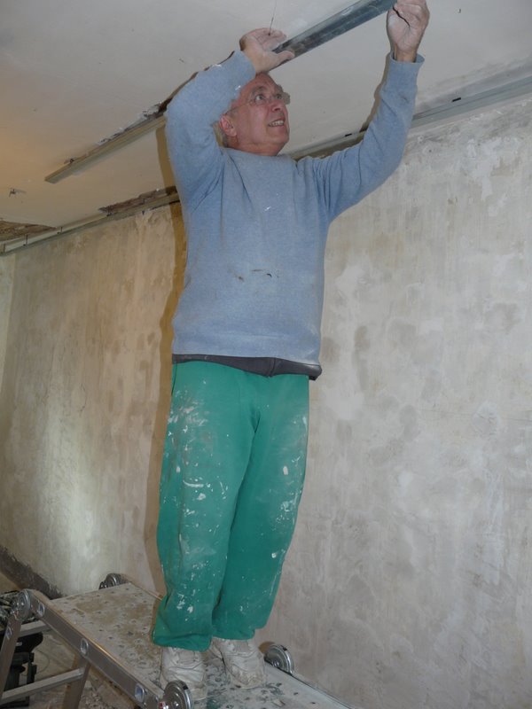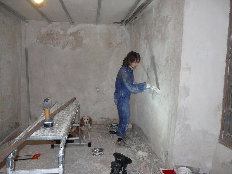 Des travaux qui piétinaient hier avec du mauvais plâtre…. Et qui aujourd’hui sont plus encourageants…. Nous sommes 100% sur la chambre de Leonidas.. La douche attendra… Pourtant, c’est tellement appréciable….
