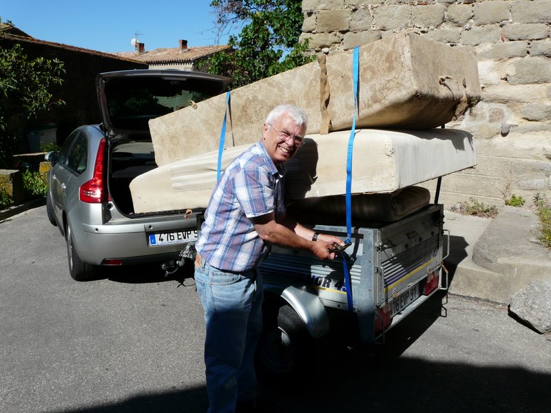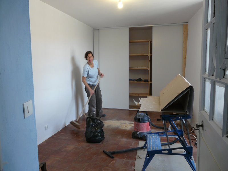 Petites virées à Puichéric les deux derniers WE… Virées à la décheterie, et de grandes avancées : la chambre de Leonidas est équipée d’un placard (pas facile : tous les murs sont tordus !) et la nôtre devient toute belle grâce à l’application de Dominica (peinture à la chaux)… Même Leonidas met tout son cœur dans le jardin …
