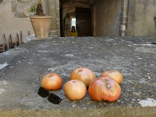 Des tomates extraordinaires (882 g la plus grosse) apportée par la voisine qui cultive un grand jardin et vient  tous les 2 jours nous donner gentiment quelques légumes…