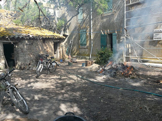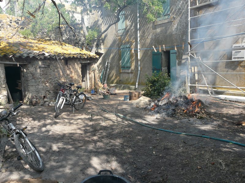 | Dominica a découvert de belles dalles dans la porcherie, du coup, on a envie de tout dégager.. |