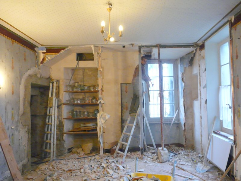 Suppression d’une cloison dans la future cuisine…