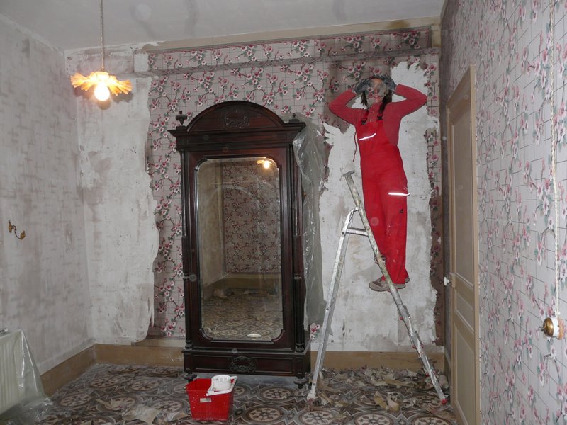 Les travaux ont été répartis entre les corps de métier, il ne manque plus que le maçon pour faire deux fenêtres… La semaine prochaine, le plâtrier commence, un maçon vient aussi…. La semaine suivante c’est la pose des carreaux de terre cuite (dans la cuisine et la souillarde)… Après, c’est le peintre, sans doute le plombier…. Et moi, j’essaye d’avancer l’électricité pour que tout soit prêt à temps !