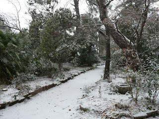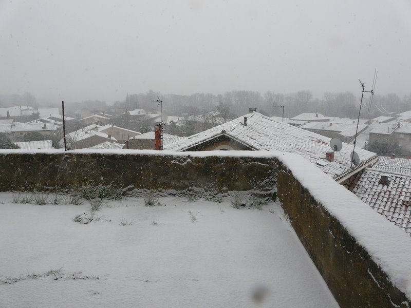 La rigole est gelée et la neige est arrivée Dimanche…. Accompagnée de la double joie des enfants : les glissades et pas d’école (cars scolaires supprimés)…
