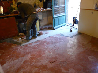 Le plâtre est terminé, l’électricité de la salle à manger est installée, la souillarde a son carrelage, la future cuisine a bien avancé, mais pendant quelques jours, le rez de chaussée n’était plus habitable… Un peu dur de manquer d’espace dans un château !!!