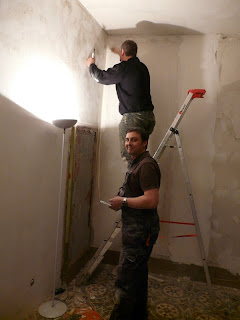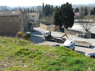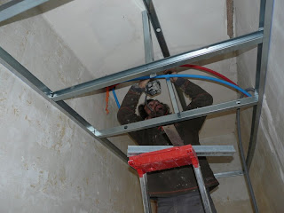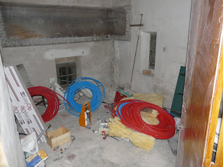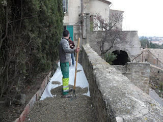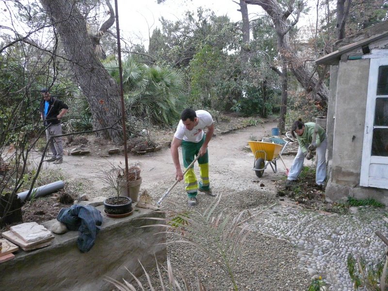 Les choses se précipitent :  les allées sont nettoyées (par Dominica) et gravillonnées…. C’est plus propre maintenant….Quelques choux-raves, de la laitue pointent le bout de leur nez dans le potager  (encore Dominica)…. Toujours à l’extérieur, un coup de bull a nivelé le parking….Et à l’intérieur de la maison : faux plafonds, électricité et passage des tuyaux de deux salles d’eau…. Peinture d’une chambre en cours…. Préparation d’une autre chambre pour la peinture….On n’arrête pas…. Et je ne parle pas des courses…..