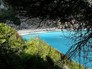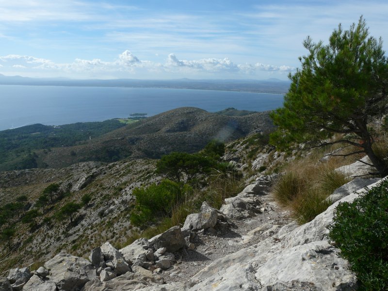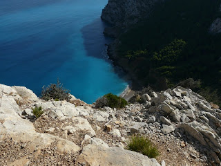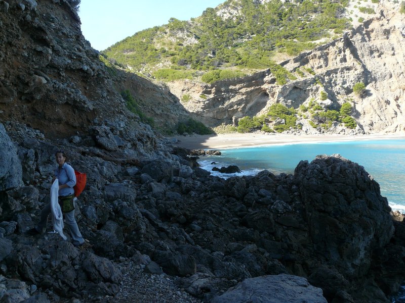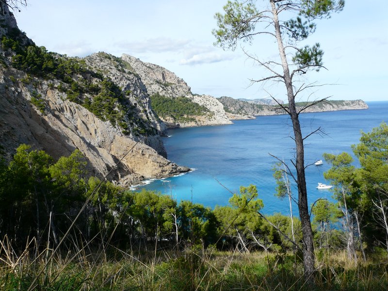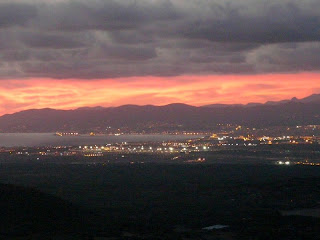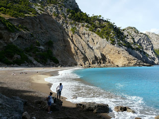 On a décidé d’aller à la plage des Coll Baix…. A pied…. 2:15 de marche dans la montagne (niveau 3 chaussures !)… On traverse le Cap de Pinar. Des paysages incroyables, des instants de découragement, la crainte de trouver une plage à l’ombre. La récompense est à l’arrivée, une vingtaine de personnes dans une crique ensoleillée…Picnic réconfortant et baignades nombreuses…. Et puis, il faut retourner…. Avec les mêmes 2:15 de marche…. Nous sommes contents d’arriver…. Et de nous assoir dans la voiture destination Sanctuari de Cura où nous projetons de dormir… A l’arrivée, magnifique vue de Palma au coucher du soleil mais porte close…. Personne pour nous accueillir…. Mais la situation s’arrange, chambre assez confortable et diner rapide….