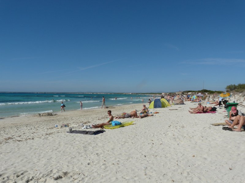 Cap au Sud : pour la plage…. Nous ne sommes pas déçus…. Le touriste est bien là…. 99% d’allemands étalés sur la plage de Cala Mondrago, la plage voisine est pire….. Un petit tour dans l’eau et hop, nous voilà repartis vers la Platja des Trenc de l’autre côté du Cap de Ses Salines…. Superbe plage (avec parking payant : 6€ !) et toujours un million d’allemands… Nous trouvons refuge dans la dune… Encore quelques baignades… Et en route pour Palma dans l’hôtel « Paradiso Garden » sans caractère mais tout confort pour consommateurs standards….Et à deux pas de l’aéroport.
