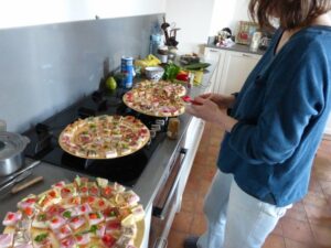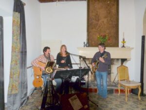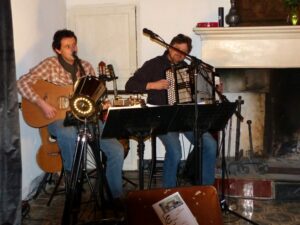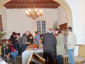 D’abord l’inauguration… Amis, voisins et commerçants du village … Deux excellents musiciens. Tout était prêt pour les accueillir…. Ils pouvaient un verre à la main, découvrir les 3 chambres d’hôtes…. Et, naturellement (!), nous n’avons eu que des félicitations….. Ils sont restés assez tard. Il faut dire que Modeste le traiteur de notre mariage avait encore fait des miracles, et que nous mêmes avions préparé des petites choses bien sympathique…. C’était très sympa en encourageant….