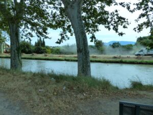 Et puis, les arbres du Canal du Midi disparaissent peu à peu… Attaqués par un certain chancre rouge (champignon de son état), il faut les couper…. 400 sur la commune de Puichéric.